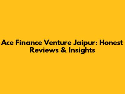 Ace Finance Venture Jaipur: Is It Right for You?