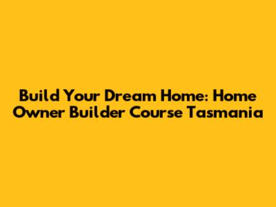 Build Your Dream Home: Home Owner Builder Course Tasmania