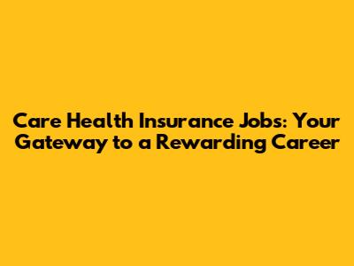 Care Health Insurance Jobs: Your Gateway To A Rewarding Career