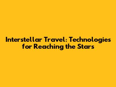Interstellar Travel: Technologies For Reaching The Stars
