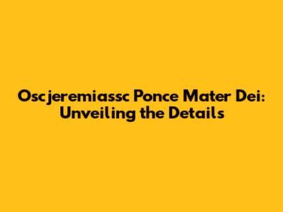 Oscjeremiassc Ponce Mater Dei: A Comprehensive Overview